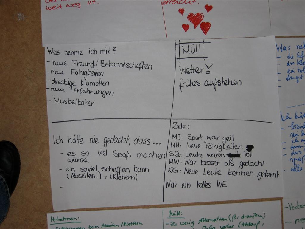 Sowohl am Felsen als auch in der Kletterhalle wird die Entwicklung von Persönlichkeit und sozialen Kompetenzen gefördert und unterstützt. Gegenseitiges Vertrauen ist beim Klettern ein "Muss" und somit besonders gut für Teams und Gruppen (bis zu 12 Personen) geeignet. Durch verschiedene Module, wie niedrige Seilelemente, Naturseilgarten, Kletterhalle, Naturfelsen und Kooperationsübungen, können verschiedene Themen und Ziele erreicht werden.